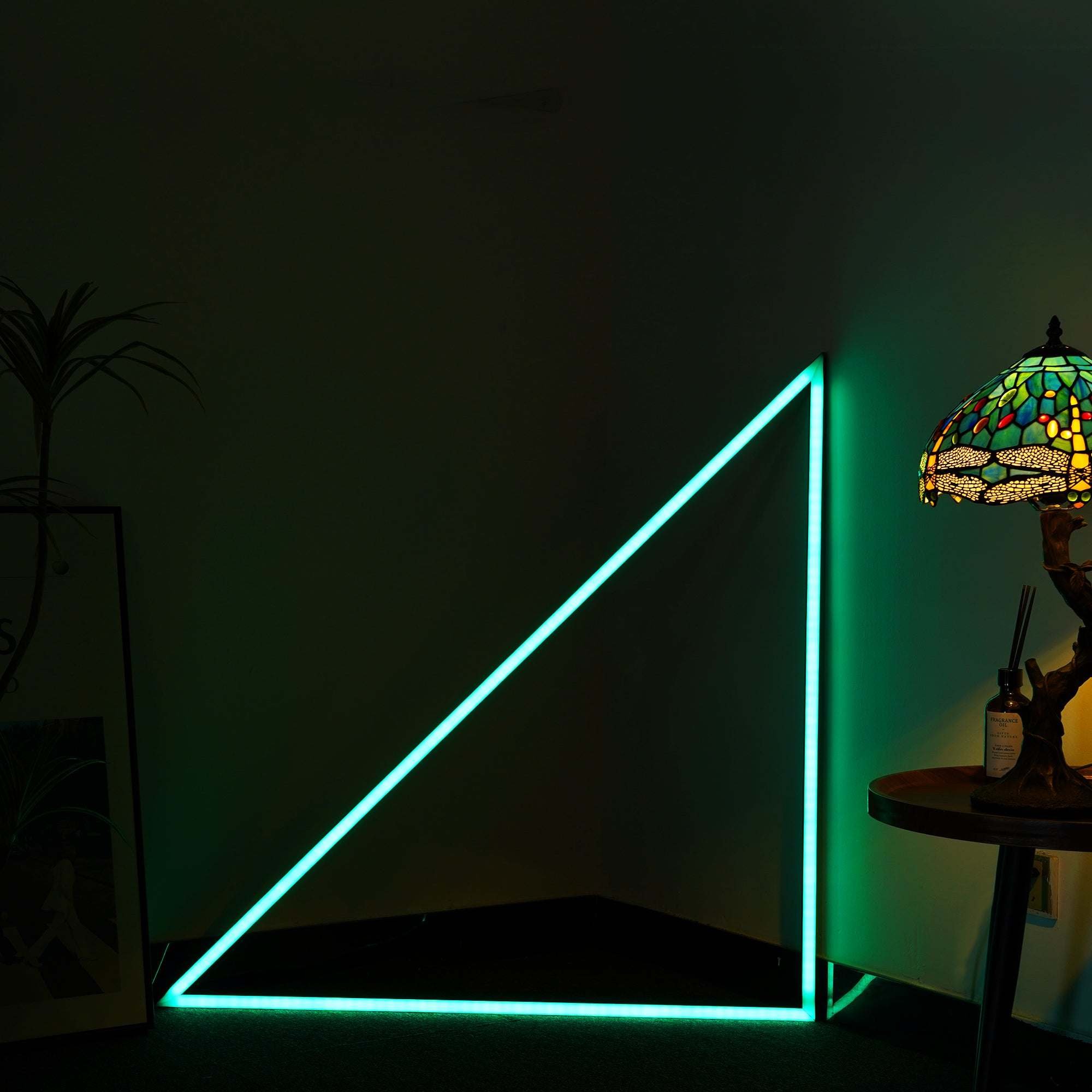 The Triangle Floor Lamp is an artistic; modern LED lamp that casts an impressive glow in your choice of 8 pre-set colors. Open up the dedicated app; and you can select a custom hue along with 10 dynamic light modes to really set the mood for any occasion. The addition of the Music Sync mode allows you to create a true light show with a color-changing display that follows the rhythm of the music or even your voice..Specifications